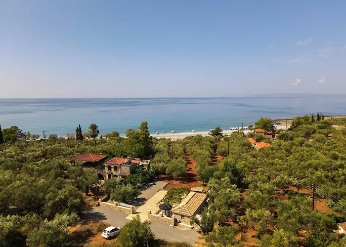 Az Olive Grove by The Sea Villa tengerparti szálláshelyet kínál alig 10 perc autózásra a Foneas beach területétől. Síkképernyős műholdas TV és klímaberendezés biztosított tartózkodása alatt ebben a tengerparti villában.